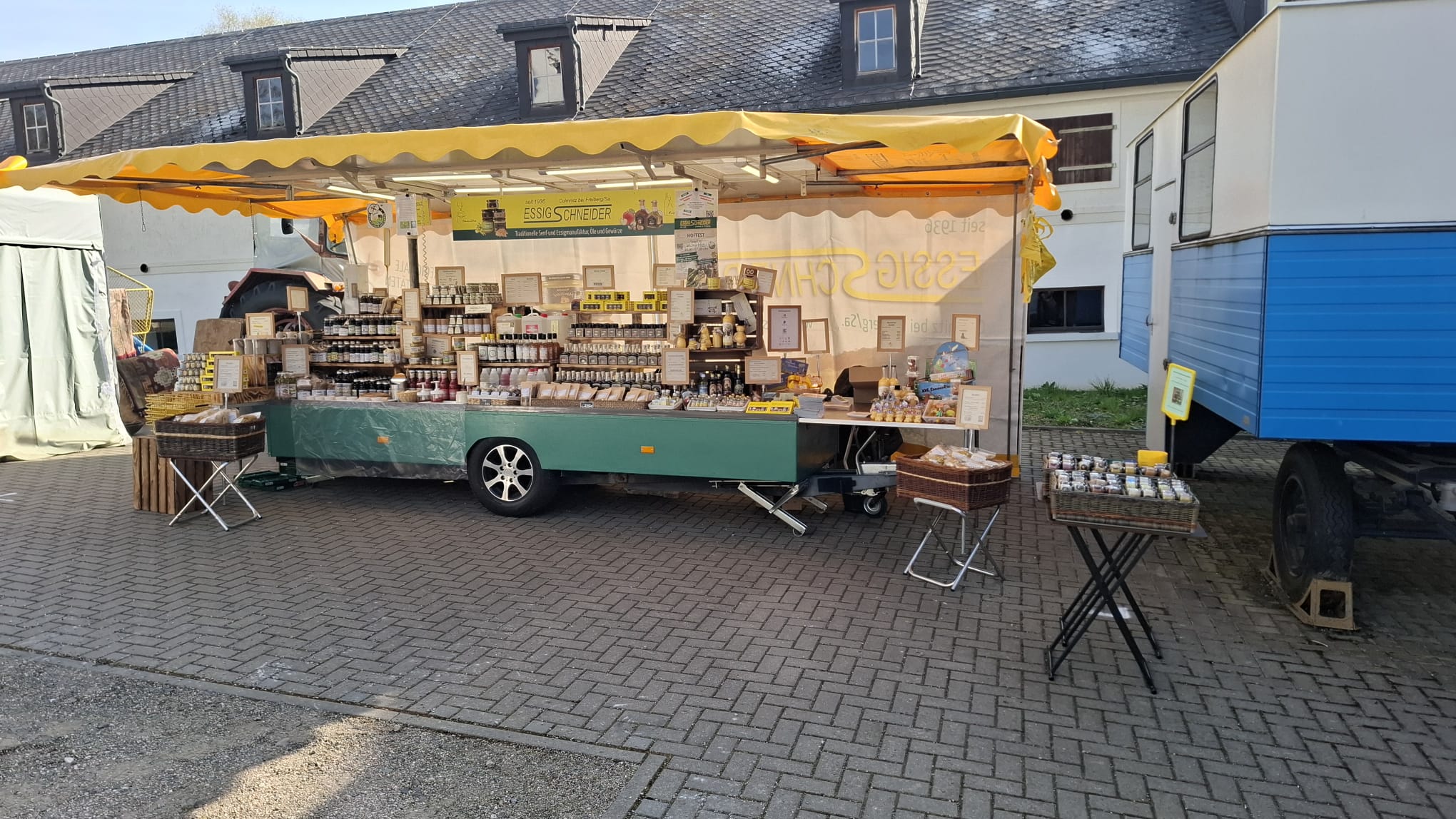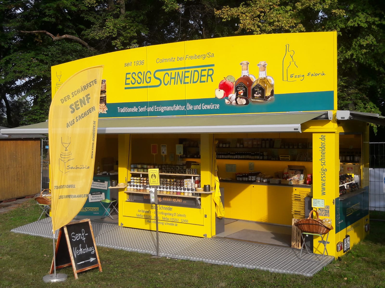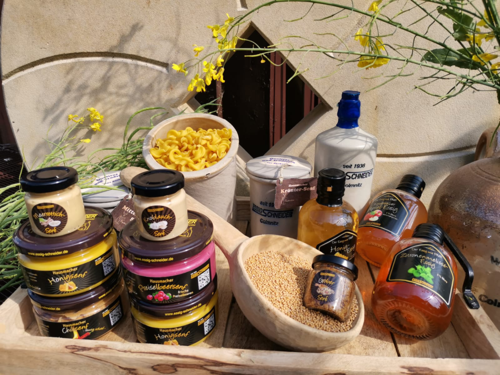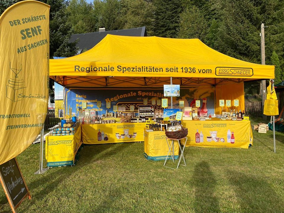 Im Jahr 2020, als die Welt mit unerwarteten Herausforderungen (Corona) konfrontiert wurde, gelang es der Familie trotz der schwierigen Umstände, ihre Traditionen aufrechtzuerhalten und gleichzeitig innovative Ideen zu entwickeln. So wurde eine kleine, aber feine Senfmühle in Auftrag gegeben, die es ihnen ermöglichen sollte, neue Senfsorten zu kreieren. Die Vorfreude auf die neuen Geschmäcker war groß, und die Familie war fest entschlossen, ihre Kunden mit aufregenden Variationen zu überraschen. Mit Blick auf die Zukunft wurden ehrgeizige Pläne geschmiedet. Neben den neuen Senf- und Essigvarianten, die in den kommenden Jahren das Sortiment bereichern sollten, dachte die Familie auch über die Einführung eines Senfworkshops nach. Hier könnten Interessierte nicht nur die Kunst der Senfherstellung erlernen, sondern auch ihre eigenen Kreationen mit nach Hause nehmen. Ein weiteres Highlight war der Beginn an der Teilnahme am „Tag des traditionellen Handwerks“, ein Fest, das tief in der Kultur des Erzgebirges verwurzelt ist. Hier wollte die Familie ihre Produkte präsentieren und die Besucher in die Welt des Senfs entführen. Im Jahr 2021 wurde der neue begehbarer Verkaufshänger angeschafft.